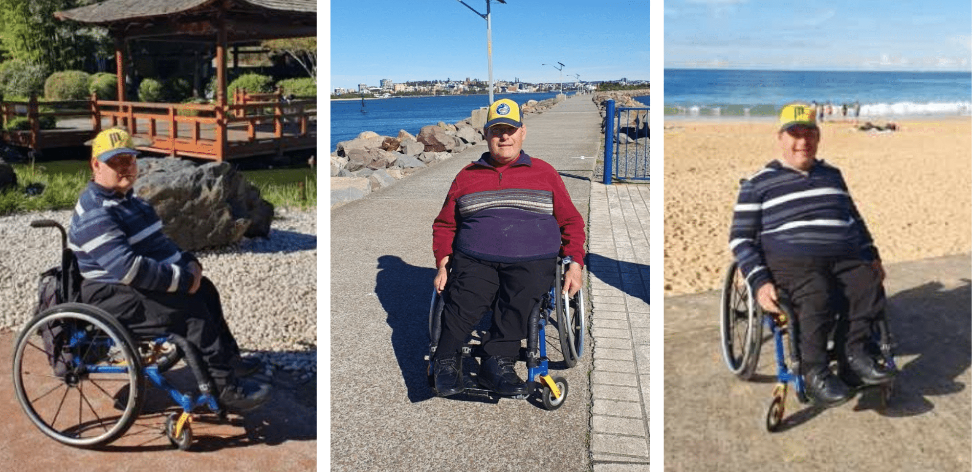 I do love all sports, and I really like spending time at the gym with my carers. I also enjoy going out for lunches to all different places on the Coast.